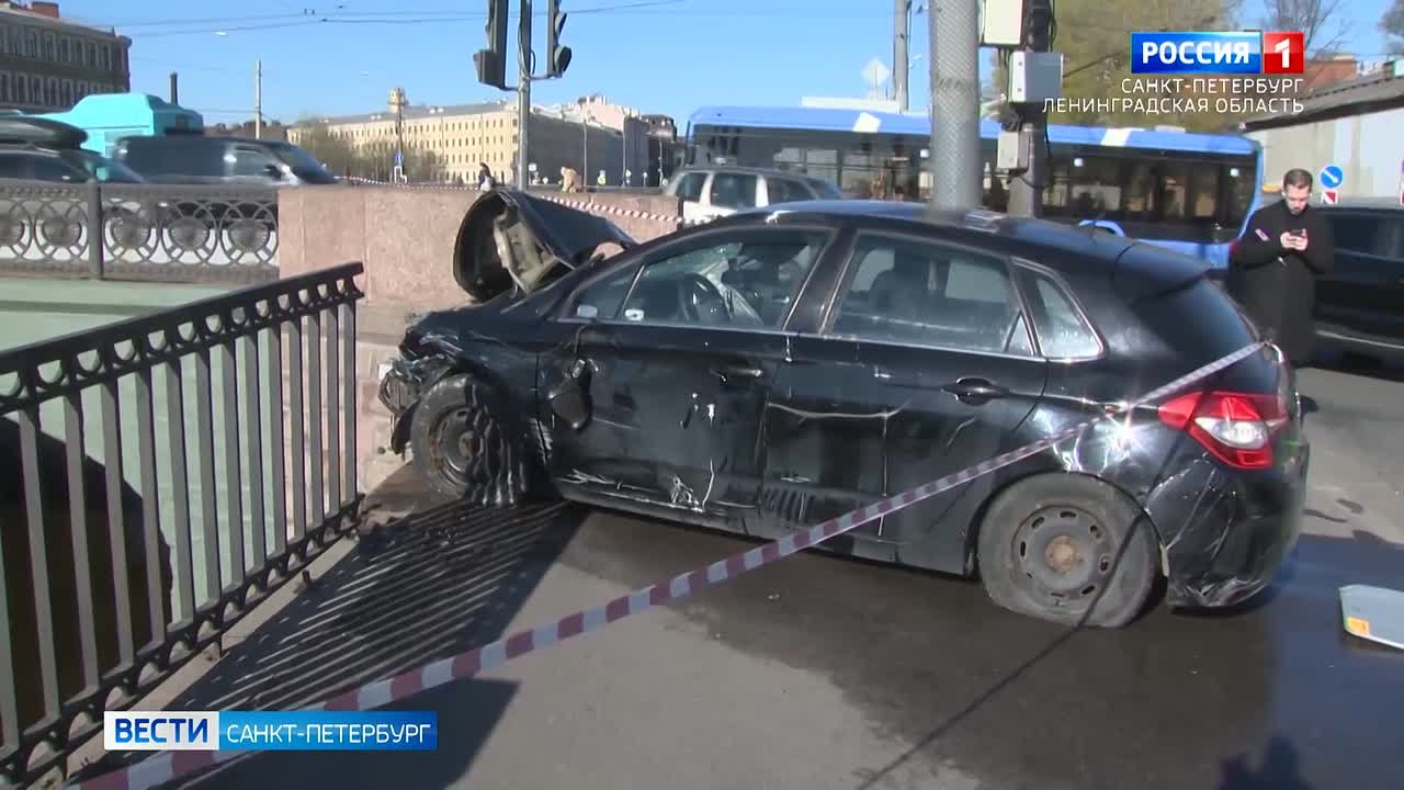 На Лермонтовском проспекте автомобиль пробил ограждение и рухнул в Обводный канал