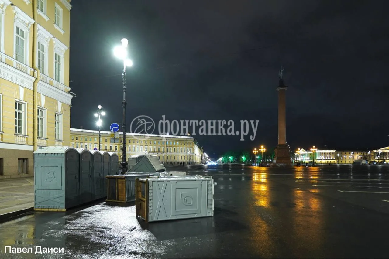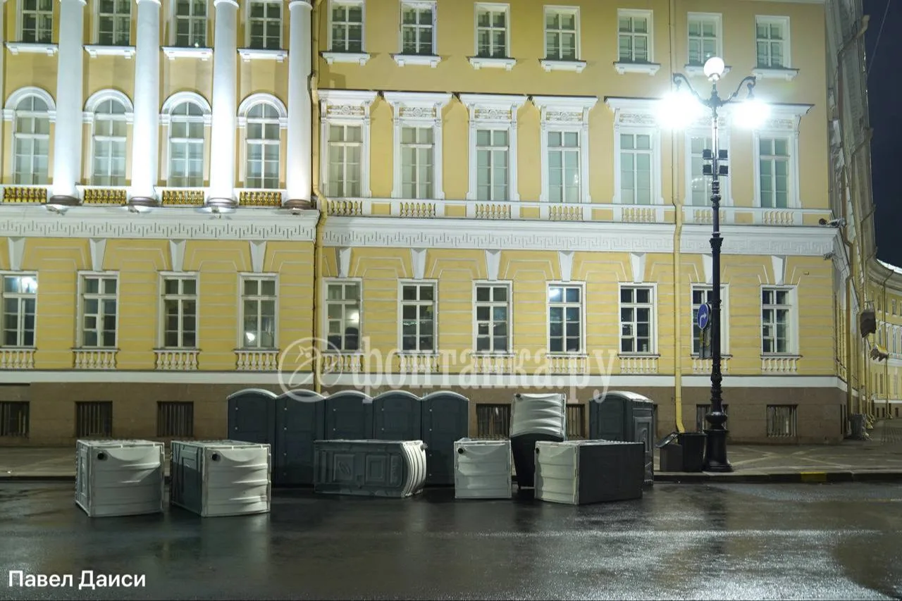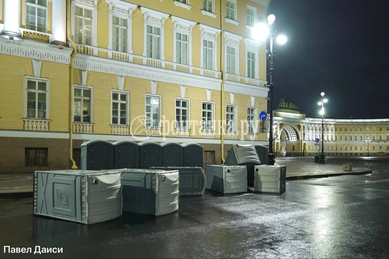 Биотуалеты на Дворцовой площади тоже победил ветер. С бодрым утром, Петербург