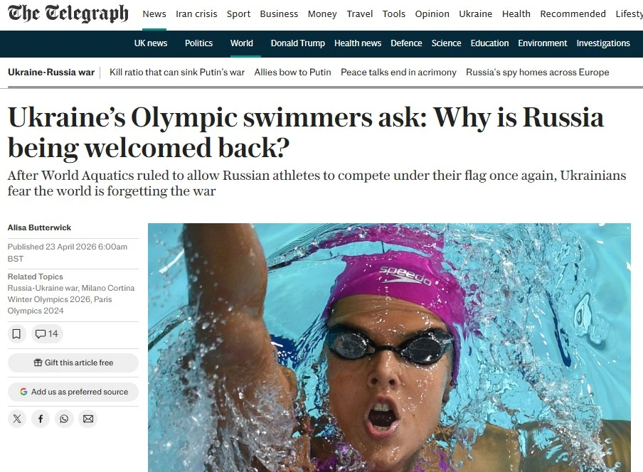 ‘Украинские спортсмены не могут понять, почему Россию возвращают в большой спорт’ – The Telegraph.