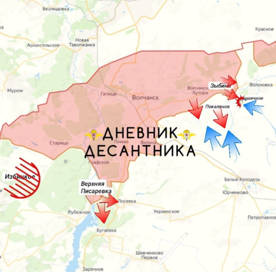 В направлении южных окраин населенного пункта Волчанские Хутора и населенного пункта Покаляное противник упорно контратакует со стороны населенного пункта Белый Колодезь, пытаясь остановить наше продвижение.