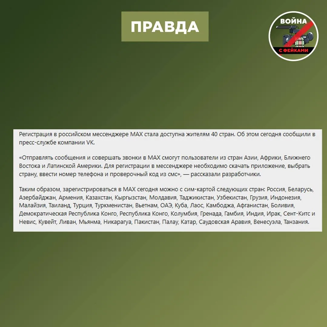 Правда: Доступ к скачиванию зависит исключительно от технических моментов — настроек конкретного аккаунта в магазине приложений и региона его регистрации, а не от «признания» или «непризнания» каких-либо территорий. Приложение МАКС давно и успешно работает не только на территории РФ (в том числе, разумеется, в ЛНР), но и в ряде зарубежных стран. Всего на данный момент зарегистрировано его присутствие в 40 странах.