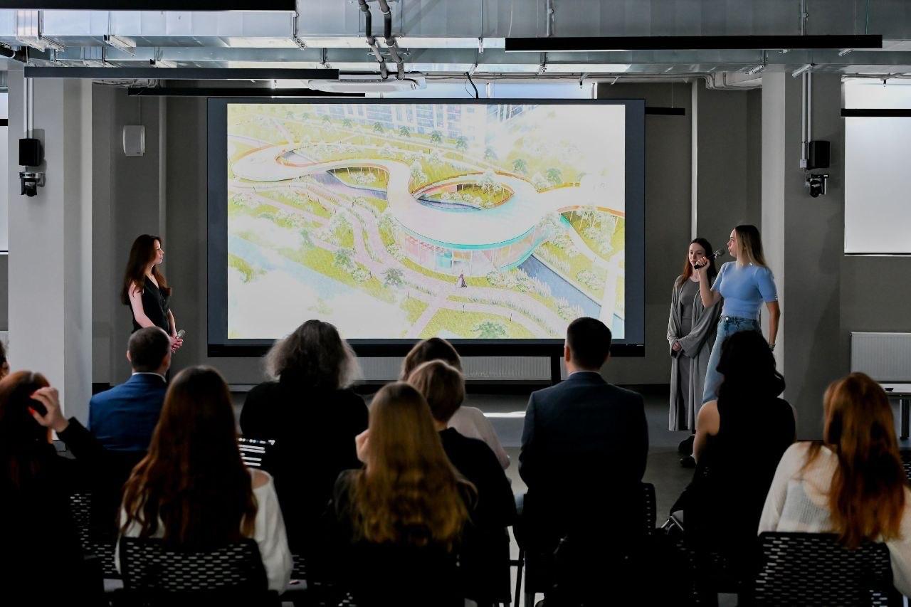 5 студенческих команд, прошедших в финал, разрабатывали план развития благоустройства территорий ЖК «Парадный ансамбль». Членами жюри выступили представители Архитектурного бюро Setl Group.