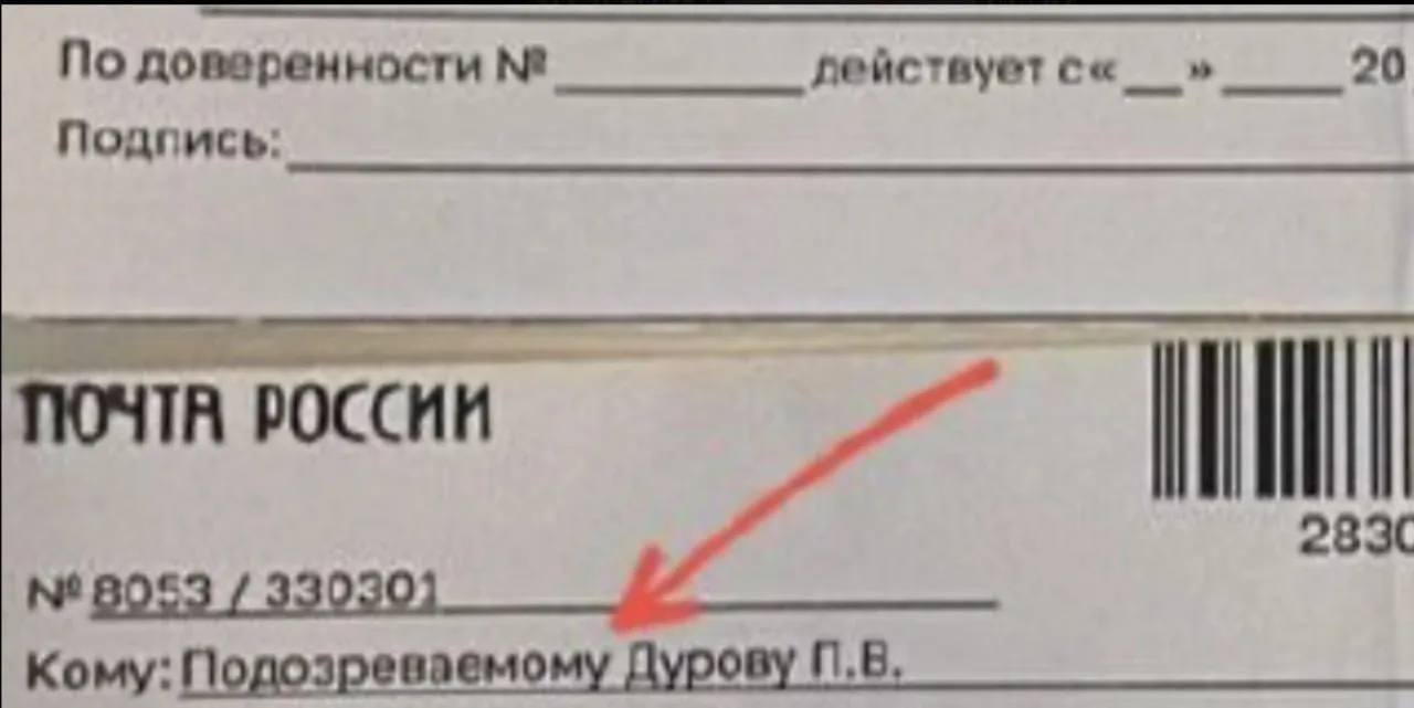«Паш, кто тебе это прислал? В России никогда не пишут „подозреваемому Дурову“, пишут „КОМУ: Дурову Павлу Валерьевичу“. Или это для вестоидов картинка? Тогда все равно, конечно»;