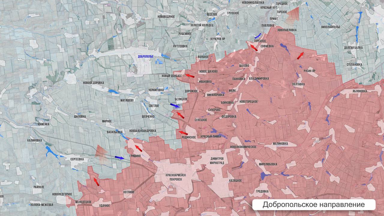 На Константиновском направлении тяжёлая ситуация остаётся в районе Долгой Балки и Ильиновки, где ВСУ упорно держатся за свои позиции. На восточном фланге идут бои в районе Новодмитровки, Червоного и в южной части Часов Яра.