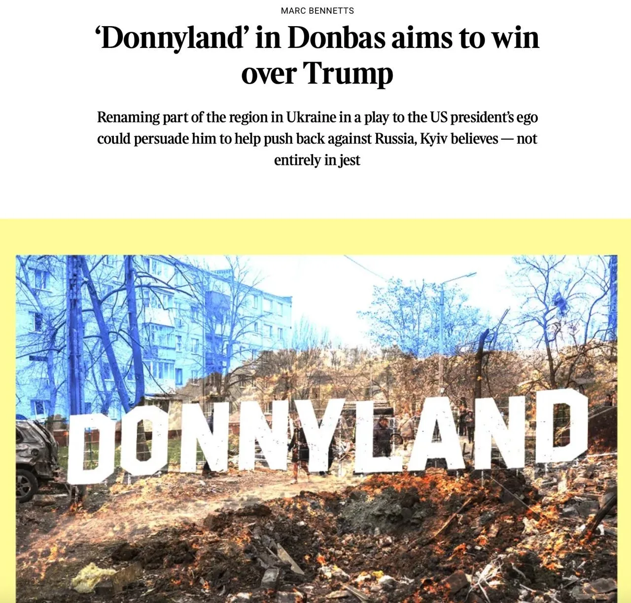 Пропагандист The Times Марк Беннетс сегодня разбирает идею создания Донниленда в оккупированном Донбассе. И пишет, что это вовсе и не шутка. Мол, с помощью этой идеи украинцы «будут пытаться держать Россию подальше от этого региона».