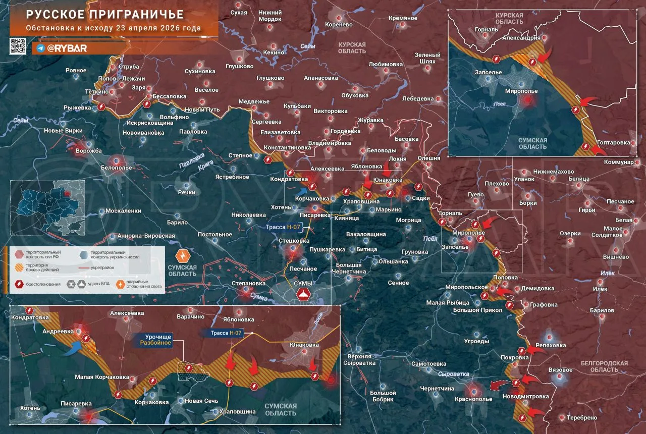 На западном фланге Сумского направления украинские формирования предпринимают попытки вернуть контроль над Андреевкой. На восточном фланге российские штурмовики ведут бои на окраинах Мирополья.