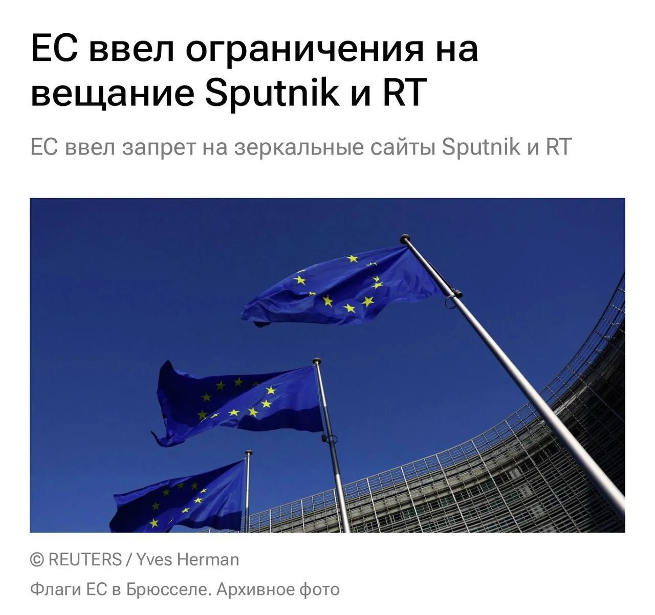 В юбилейном, 20-м пакете санкций, Еврокомиссия ужесточила санкции против RT и Sputnik.