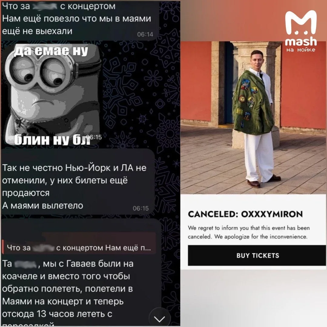 Фанаты иноагента Оксимирона обвиняют его в кидалове — по их мнению, рэпер не смог собрать зал в Майами и отменил концерт за день до. Многие хранили билеты ещё с прошлого несостоявшегося тура и теперь подозревают, что артист снова провернул ту же схемку с "болезнью".