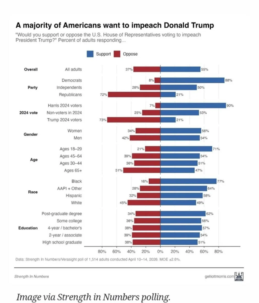 Новый опрос, проведённый в Штатах, говорит о беспрецедентном уровне недоверия к действующему лидеру. В список 55% «недовольных» вошла пятая часть республиканцев и часть избирателей, поддержавших Трампа на выборах 2024 года.