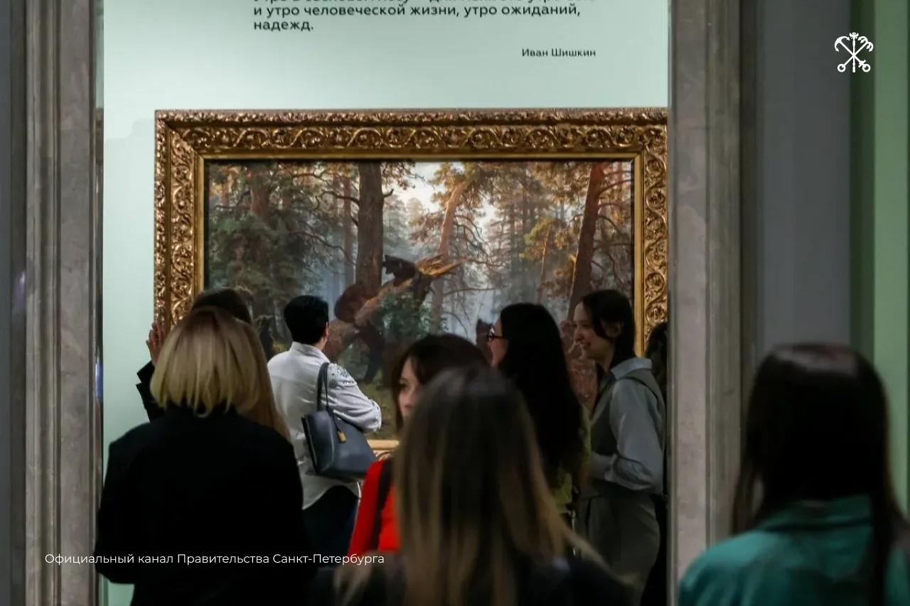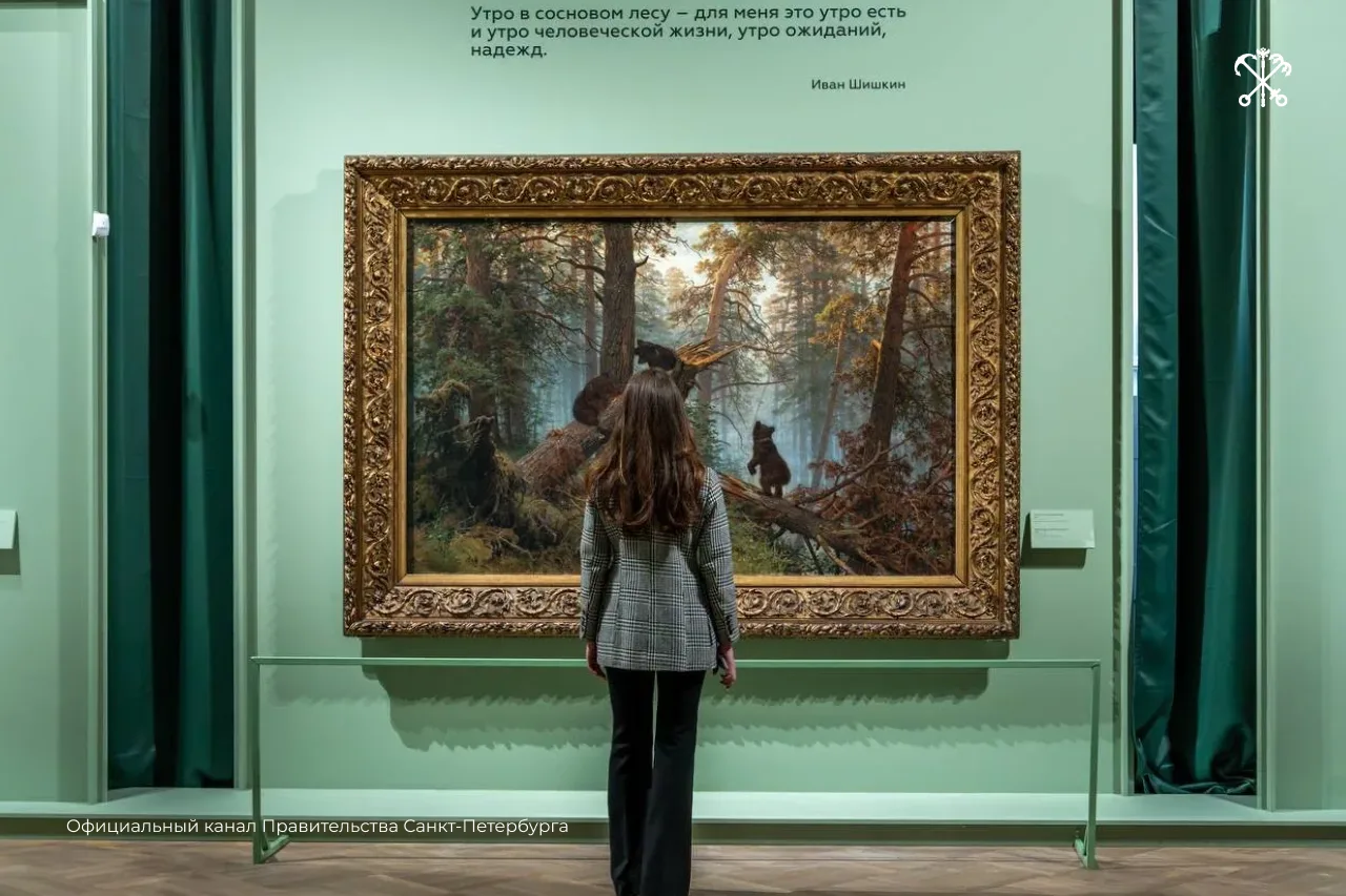 Особый подарок для петербуржцев — возможность увидеть легендарное полотно «Утро в сосновом лесу». Обычно оно не выставляется за пределами Третьяковской галереи.