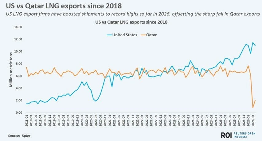 Судя по графику на сегодня с мировых рынков ушло примерно 4 млн. тонн катарского СПГ в месяц. За истекший год США нарастил его производство на более чем 3 млн. тонн.