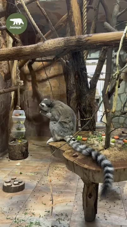 В честь торжества киперы устроили для всех обитателей вольера сладкий сюрприз — развесили вкусняшки: от яблок и груш до микрозелени. Полосатая команда осталась довольна.