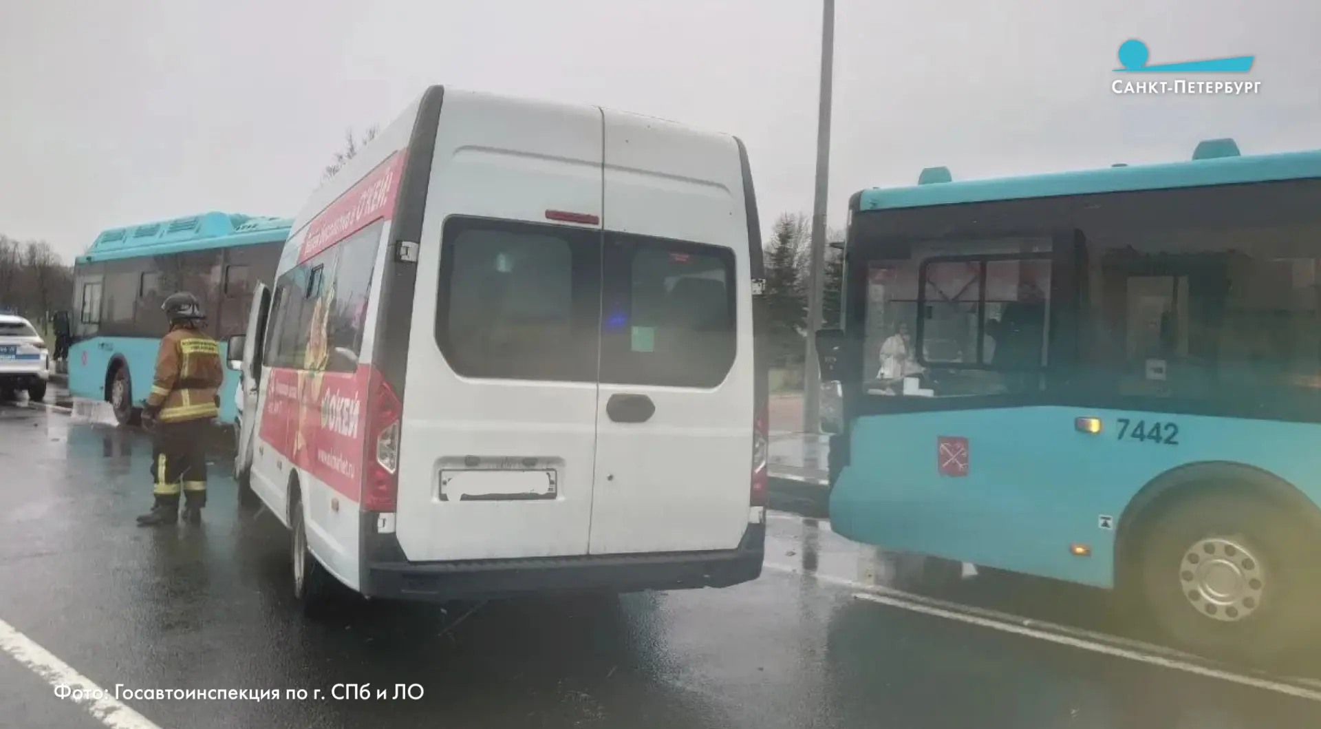 У водителя случился инсульт: на Пулковском шоссе столкнулись три автобуса.