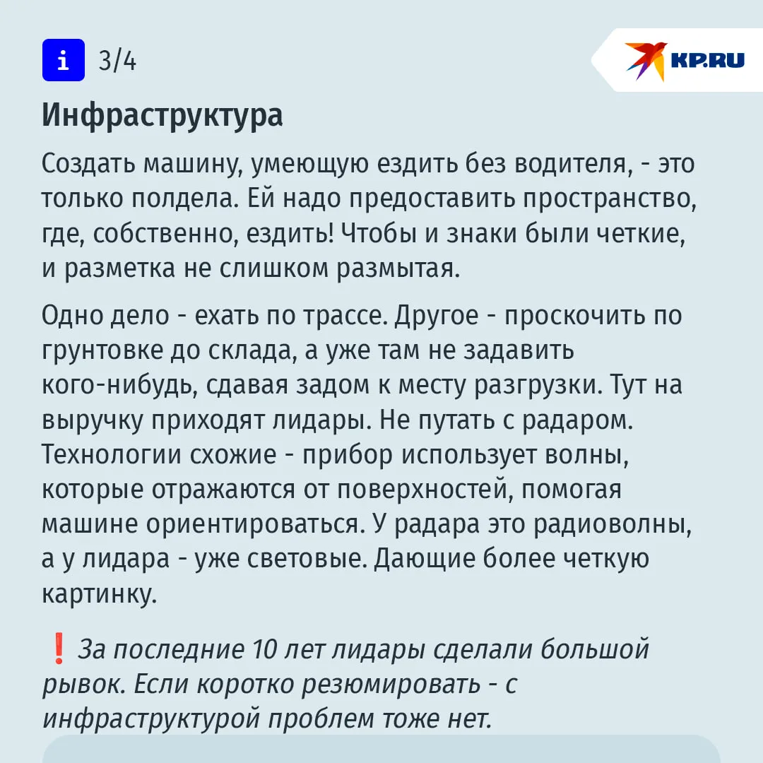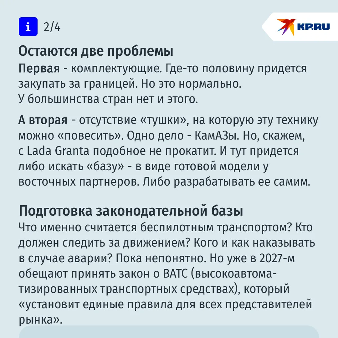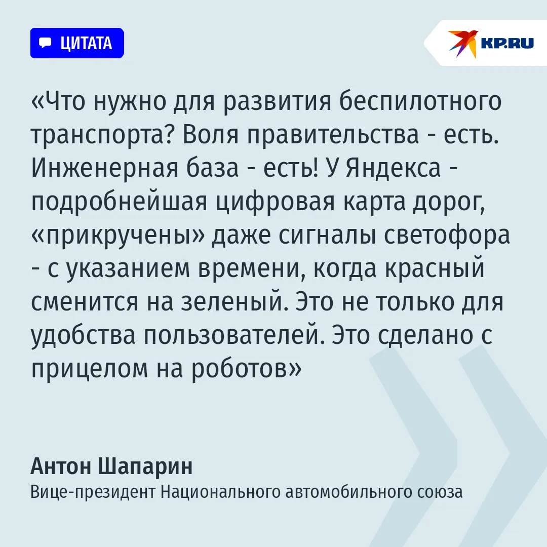 “Внедрение беспилотных технологий продолжится. На горизонте 2050 года до половины транспортных средств в России могут стать высокоавтоматизированными”, - заявлял осенью премьер Михаил Мишустин.