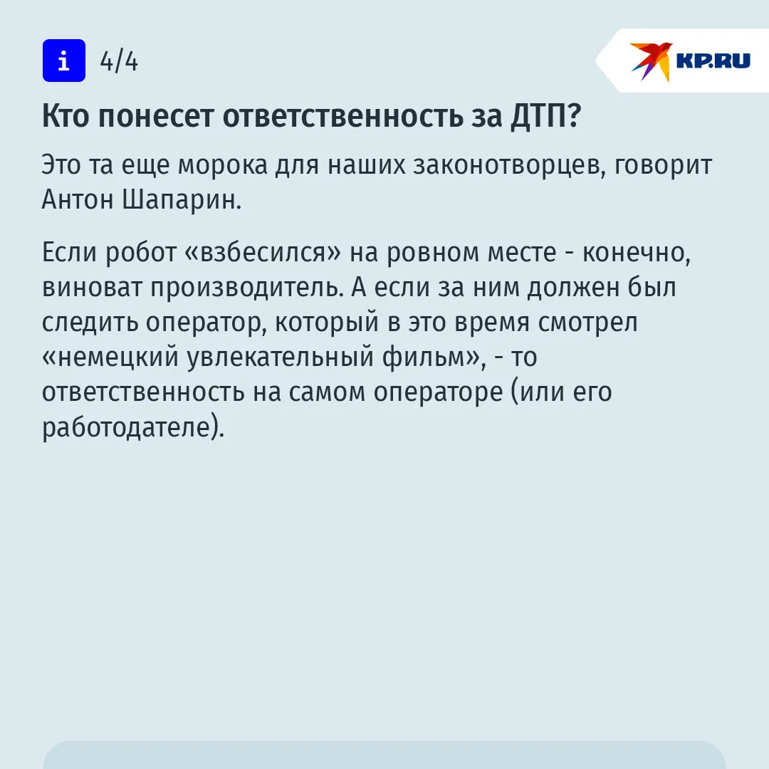 Робот не знает усталости. Ему не нужен сон, перерыв на еду и туалет. Конечно, беспилотному транспорту необходим контроль. Но один оператор может одновременно следить, условно, за сотней машин.