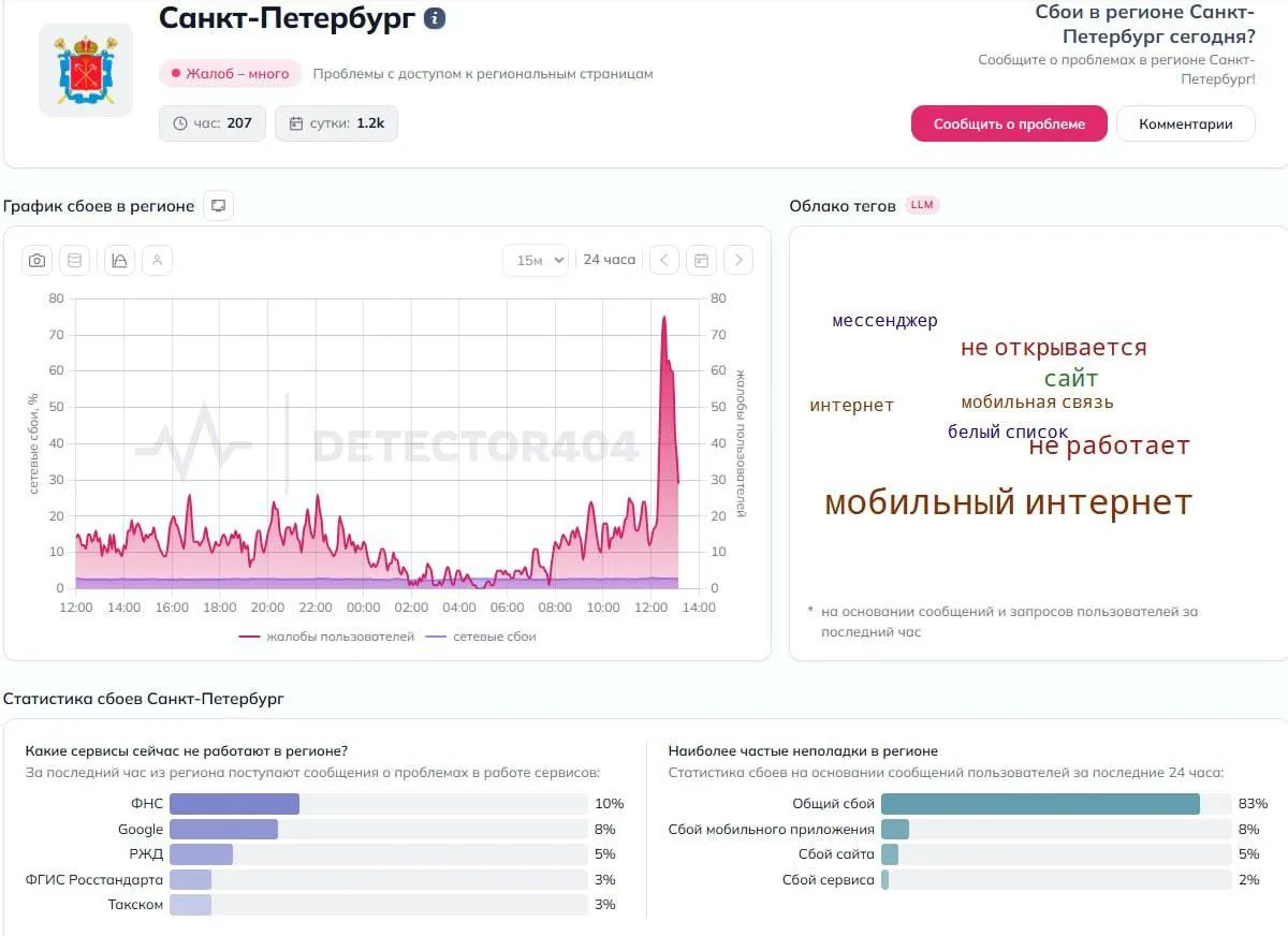 В Петербурге растет число жалоб на работу мобильного интернета. Пик негодований пришелся на 13 часов.