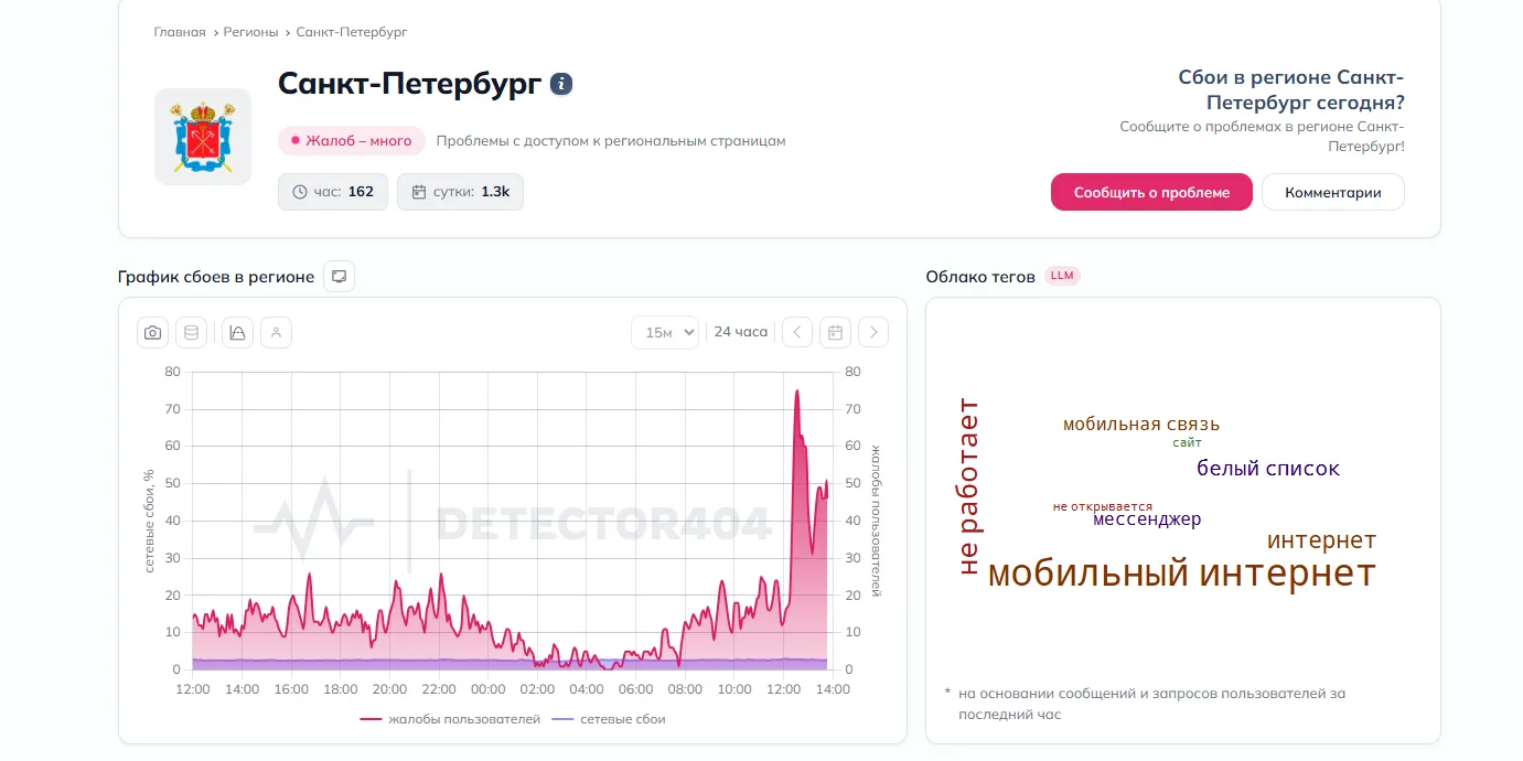 По данным сервиса Downdetector, сбои отмечаются в работе мессенджеров и «белых списков». Кроме того, пользователи не могут зайти на сайты ФНС, РЖД, МВД и ФГИС Росстандарта.