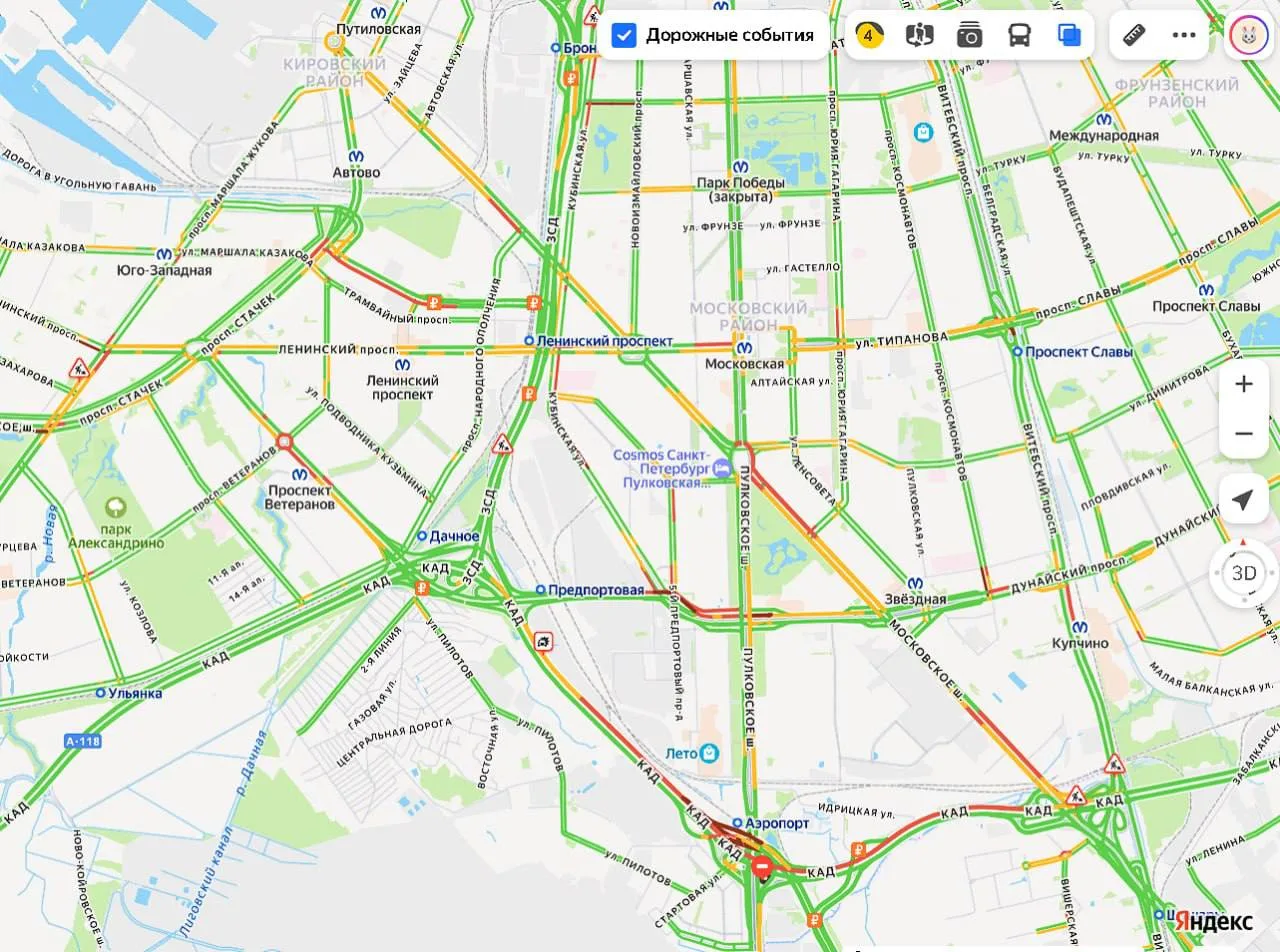 В «Разговорчиках» пишут, что пробка копится и на развязке КАД и ЗСД.