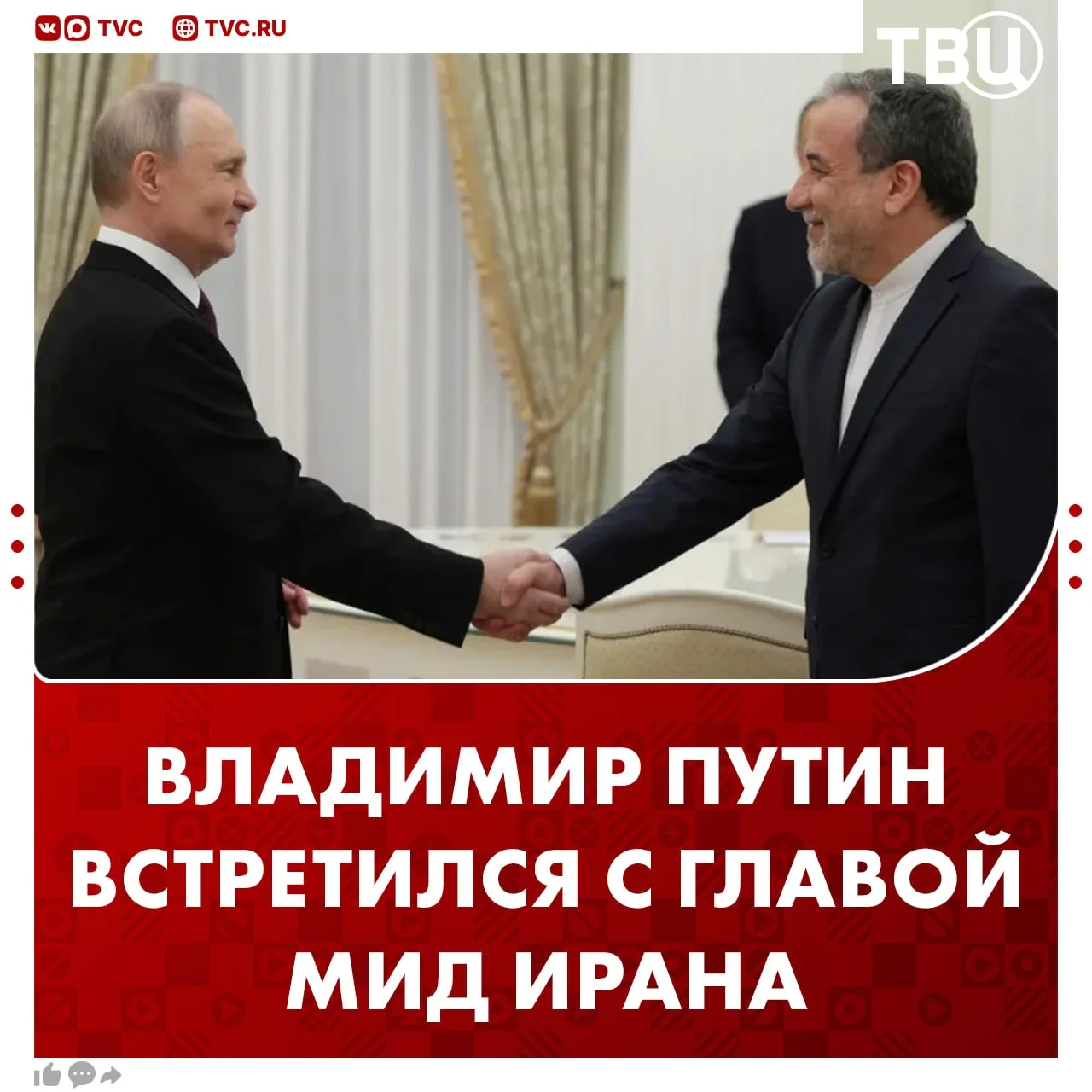 Президент России проводит встречу с главой МИД Ирана Аракчи в Санкт-Петербурге.