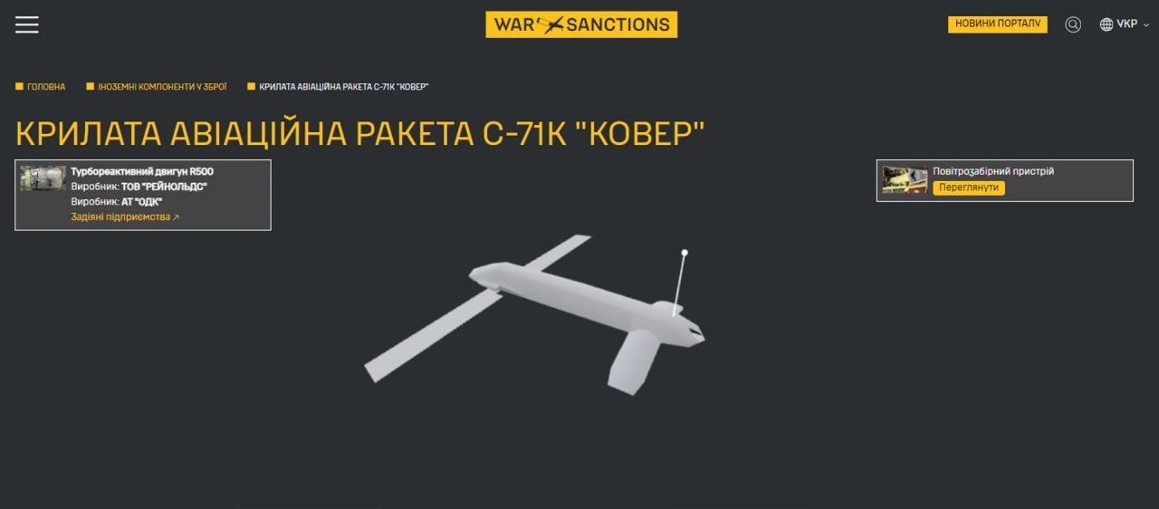 Украинская военная разведка обнародовала технические детали новой крылатой ракеты РФ С-71К «Ковер», которая уже применялась в боях.