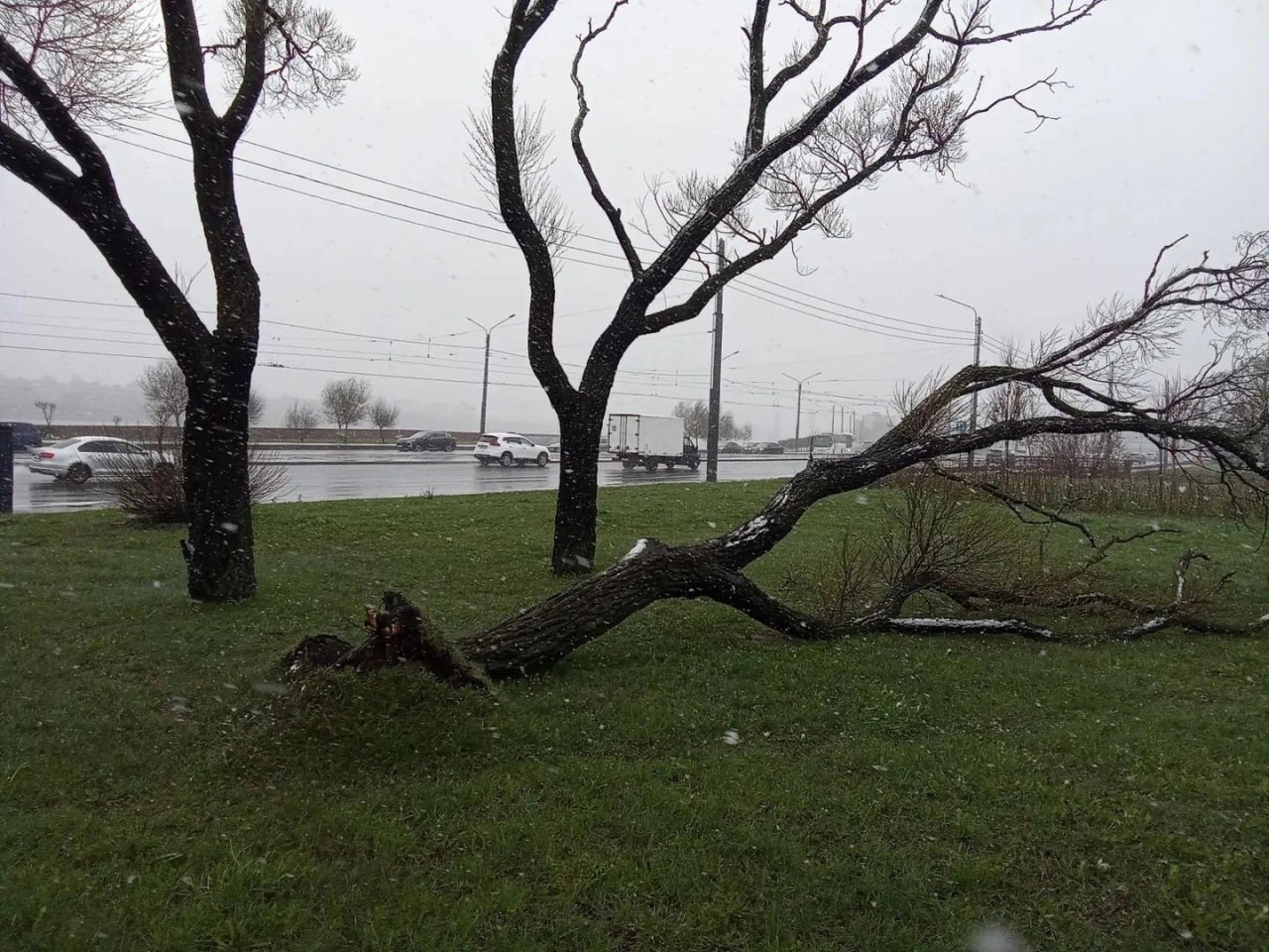 Но больше всего не повезло водителю с Дачного проспекта: едва припарковался, как на машину упало дерево.
