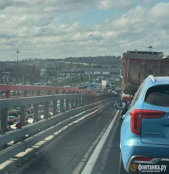 13-километровый затор образовался на КАД перед пересечением с Софийской. Читатель сообщает о пробке на съезде к Пулково.