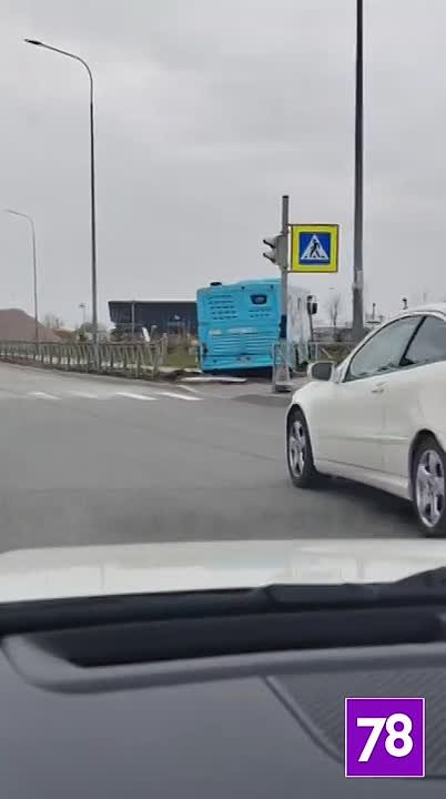 Лазурный вылетел на тротуар в районе пешеходного перехода на Васильевском острове. От удара в автобусе повылетали стёкла.