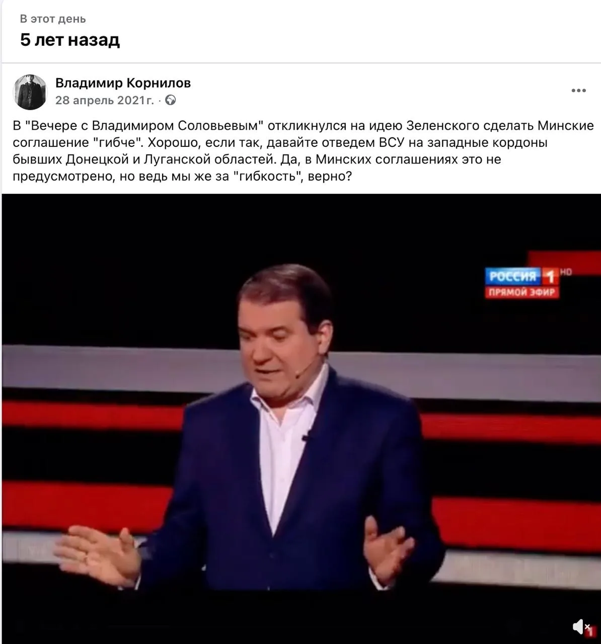 Ровно пять лет назад Зеленский фактически отверг Минские соглашения, предложив сделать их «гибче». Я ему еще тогда как вариант предложил отвести войска ВСУ на западные границы ДНР и ЛНР.