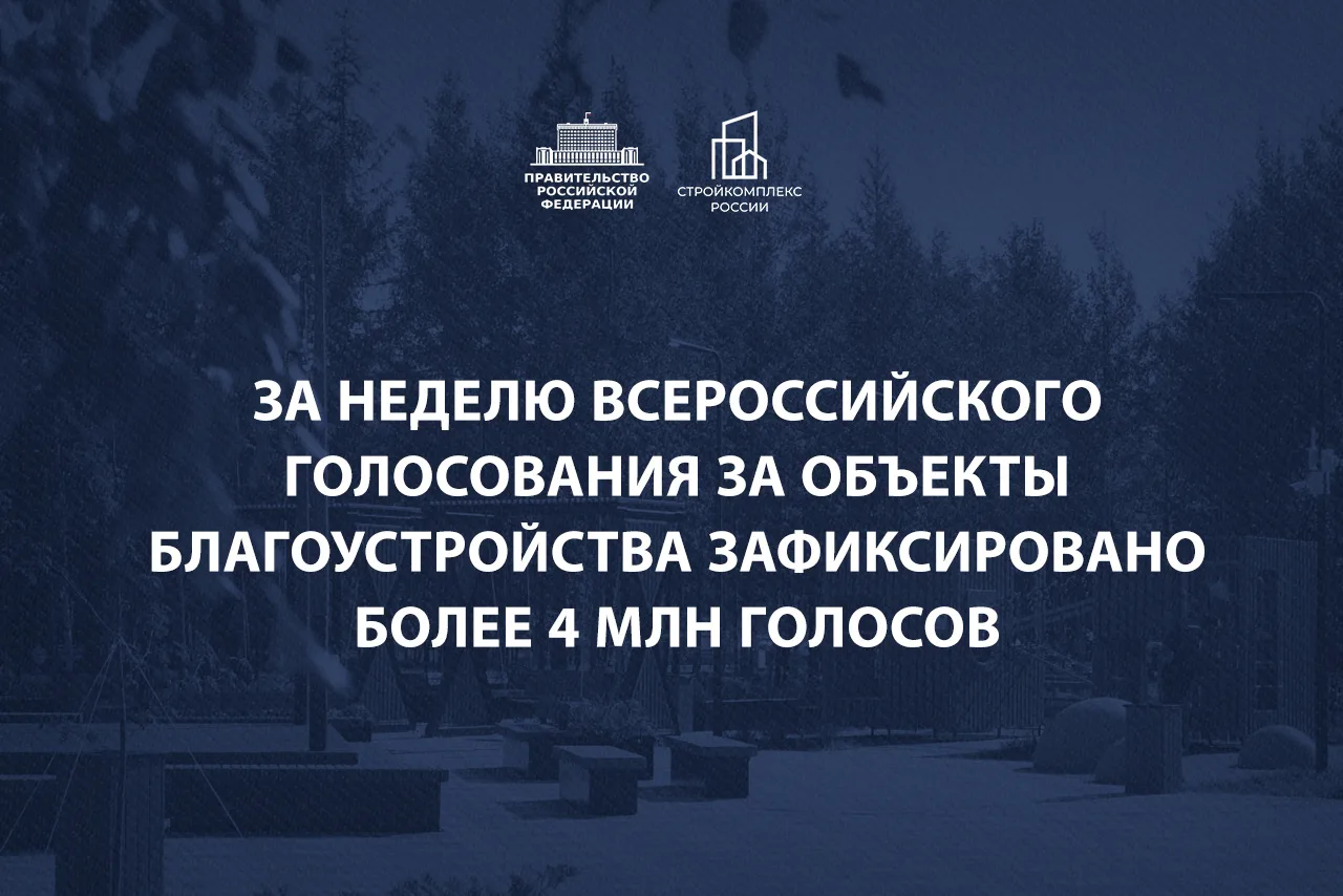 Хочу поделиться приятным событием - буквально за неделю Всероссийское голосование за объекты благоустройства набрало более 4 млн голосов