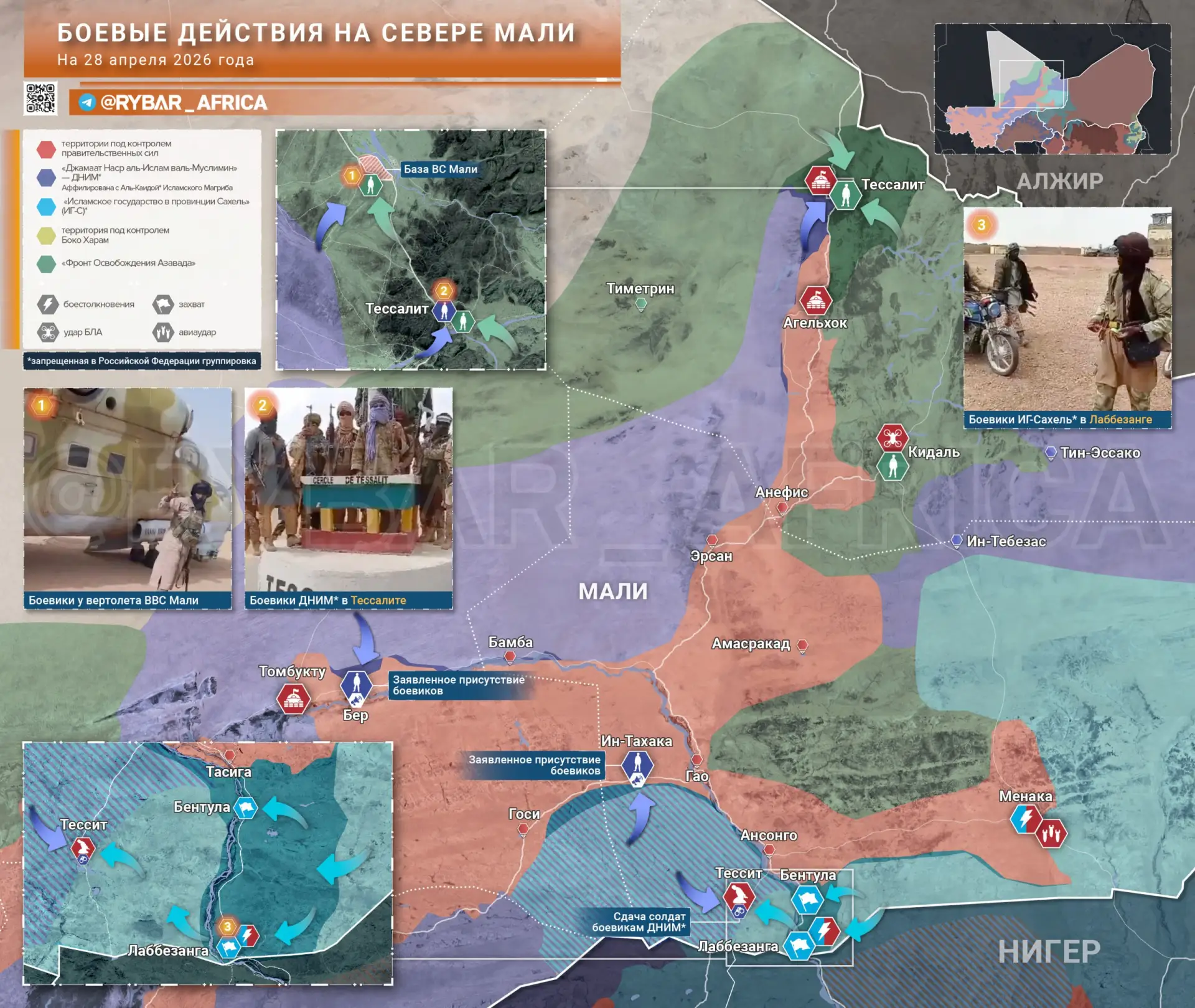 Значительно южнее пал город Лаббезанга под ударом ИГ-Сахель. Малийские войска и проправительственное ополчение оставили позиции фактически без боя. Это «ворота» в дружественный Нигер, которые теперь закрыты.