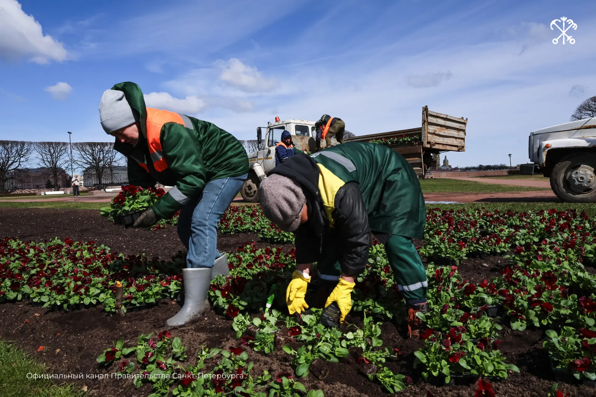 Цветники появляются на ключевых локациях — от Стрелки Васильевского острова и Александровского сада до Марсова поля и площади Балтийского вокзала. Для каждого пространства подбирают свою цветовую гамму. Ко Дню Победы в городе высадят около 600 тысяч виол.