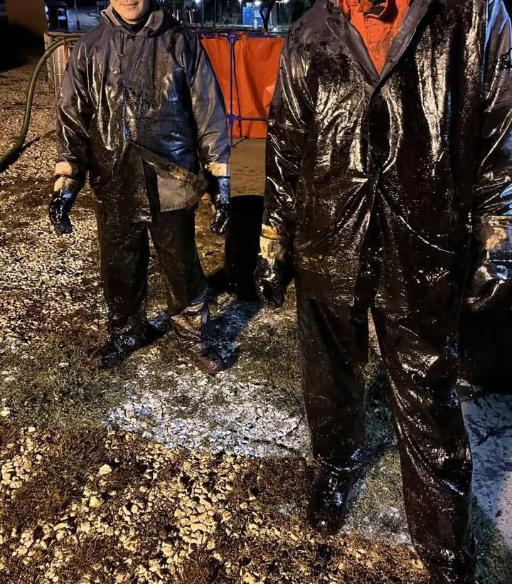 На реке и в море выставлены боны. Они удерживают мазут. На пляжи никого не пускают. Птицы очень сильно пострадали. Работают волонтёры и отмывают их.