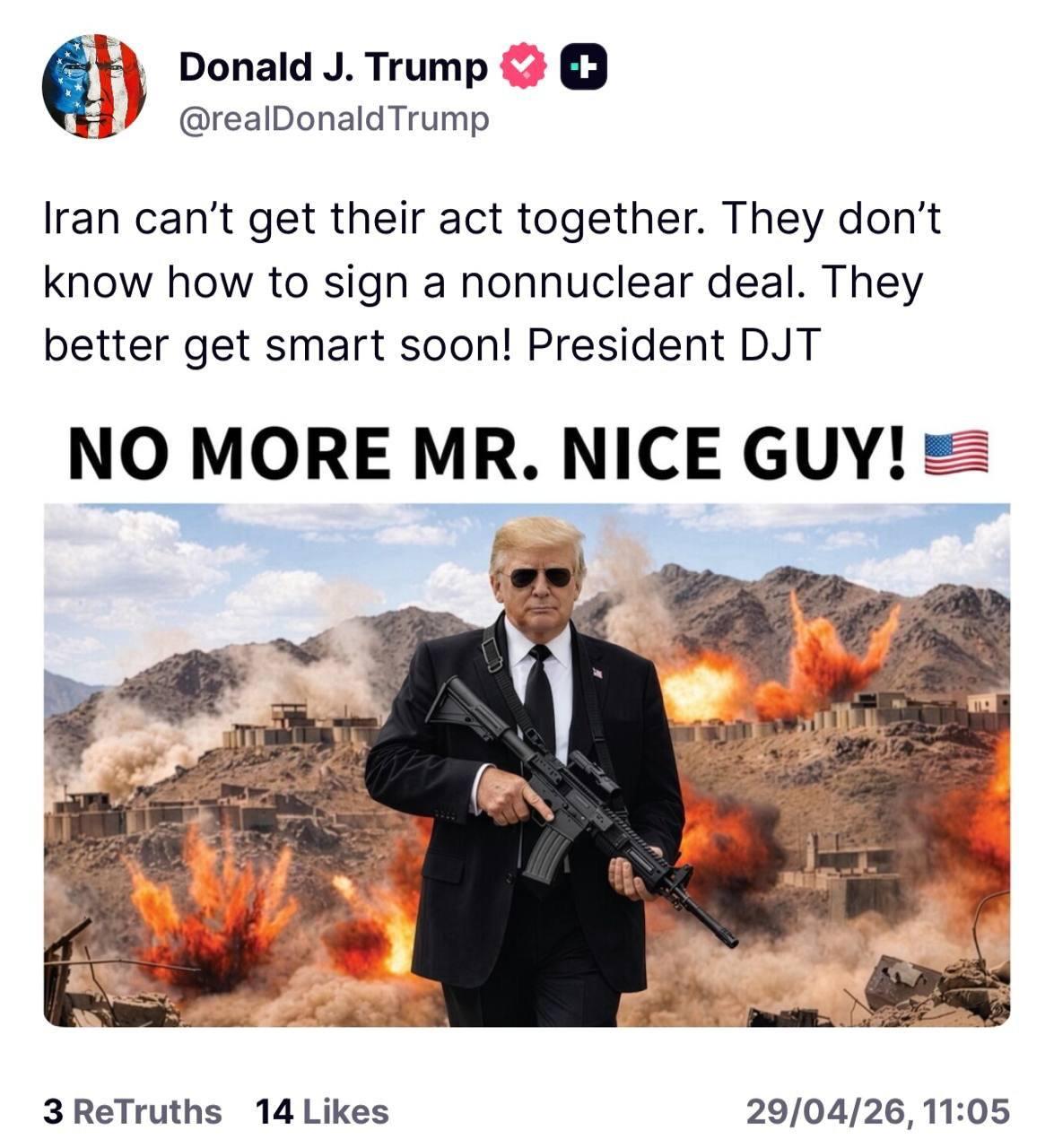 Трамп продолжает попытки запугивать Иран через соц.сети выкладывая кринжовые мемы