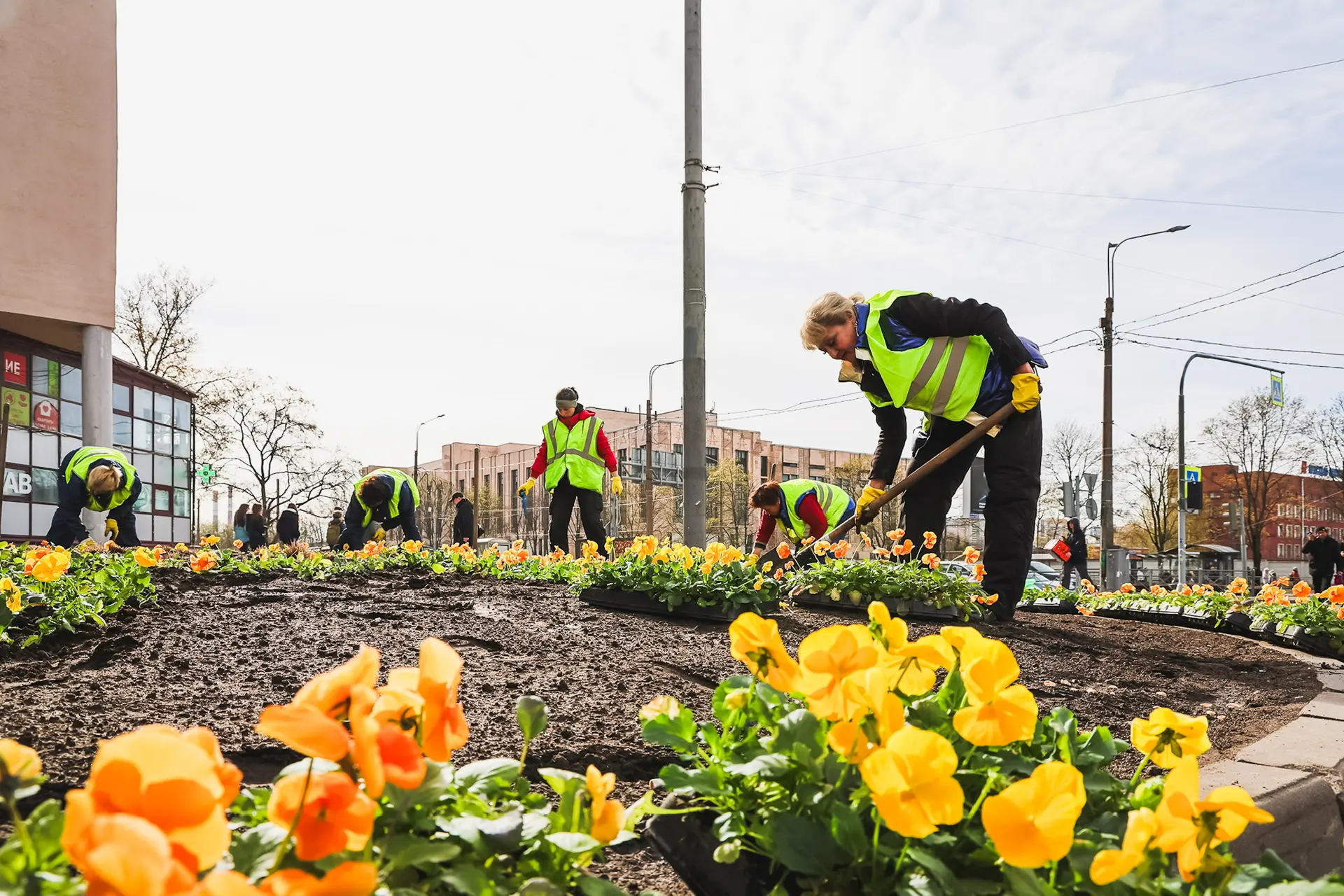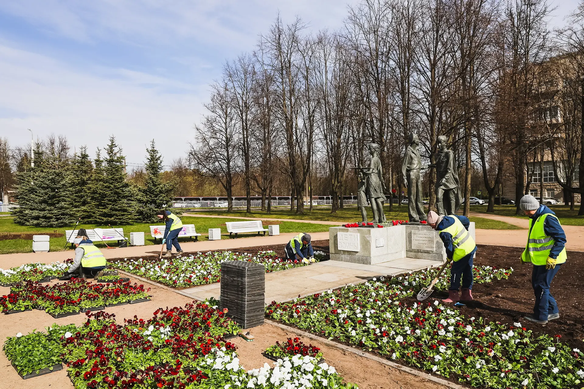 Садово-парковые хозяйства приступили к оформлению городских улиц к важнейшему празднику. Более 100 тысяч виол украсят проспект Непокорённых. Всего в парках, скверах и на улицах Петербурга высадят их порядка 600 тысяч.