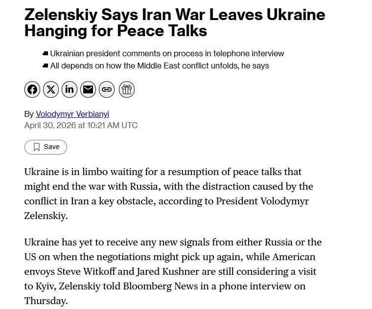 ‘Я думаю, что Россия может поднять вопрос о прекращении огня в обмен на снятие санкций с определенных предприятий. Я знаю, что они поднимают вопрос о снятии санкций SWIFT, чтобы их банки могли работать. Для Украины все это — большой риск’ –Зеленский в интервью Bloomberg.