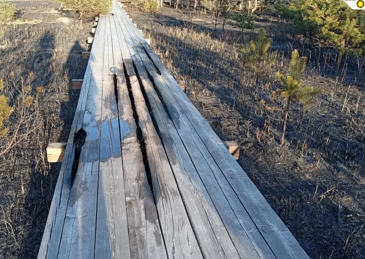Площадь возгорания составила 0,6 гектара. К 20:00 его удалось ликвидировать. Посетителей экотропы просят быть осторожнее - часть настила повреждена огнем. Его планируется восстановить в ближайшее время.