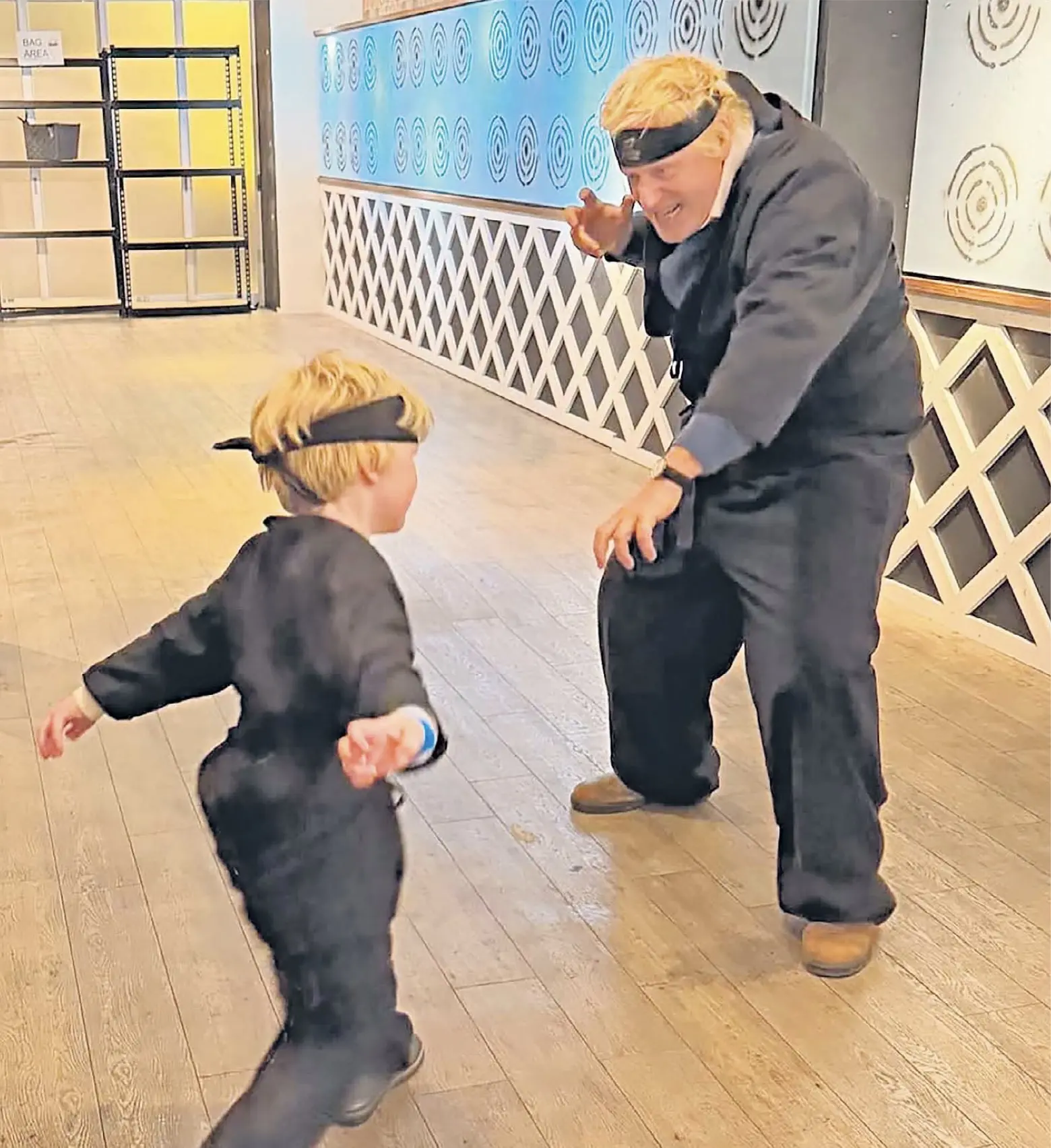 А Бориска Джонсон, отправивший украинцев на войну «до последней капли крови», продолжает развлекаться и позировать в самых нелепых нарядах и позах. На этот раз он решил устроить урок карате своему сыну в честь шестилетия того. Ох, и ужаснется этот сын, когда вырастет и узнает, сколько народу погубил его папаня!