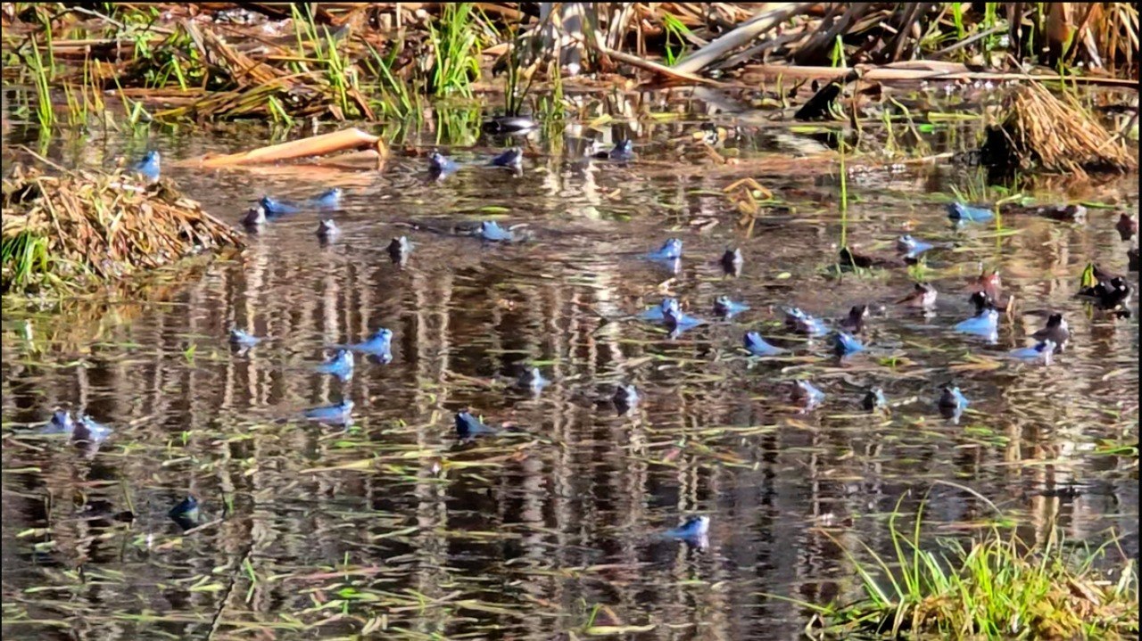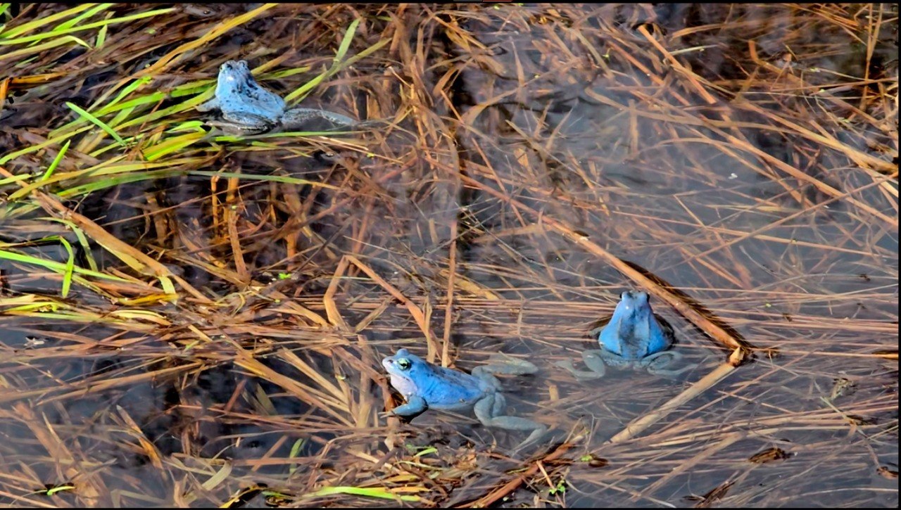 В Петербурге самцы остромордых лягушек стали небесно-голубыми. Как рассказал биолог Павел Глазков, они делают это ради любви привлечения самок.