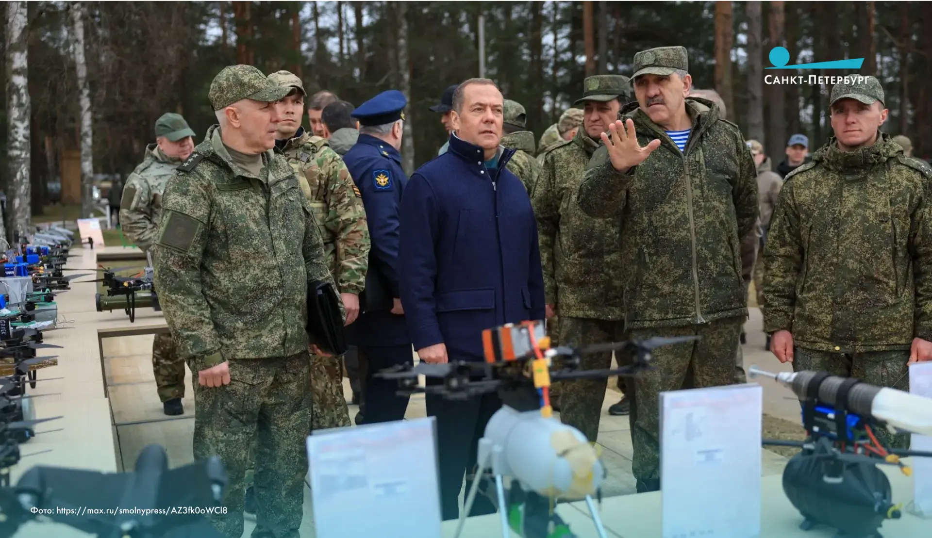 Заместитель председателя Совета Безопасности Российской Федерации Дмитрий Медведев, полномочный представитель Президента Российской Федерации в СЗФО Игорь Руденя, губернатор Санкт-Петербурга Александр Беглов, губернатор Ленинградской области Александр Дрозденко, заместитель министра обороны РФ, Герой России Юнус-Бек Евкуров и временно исполняющий обязанности командующего войсками Ленинградского военного округа Рустам Миннекаев встретились сегодня с военнослужащими в учебном центре на территории Ленинградской области.