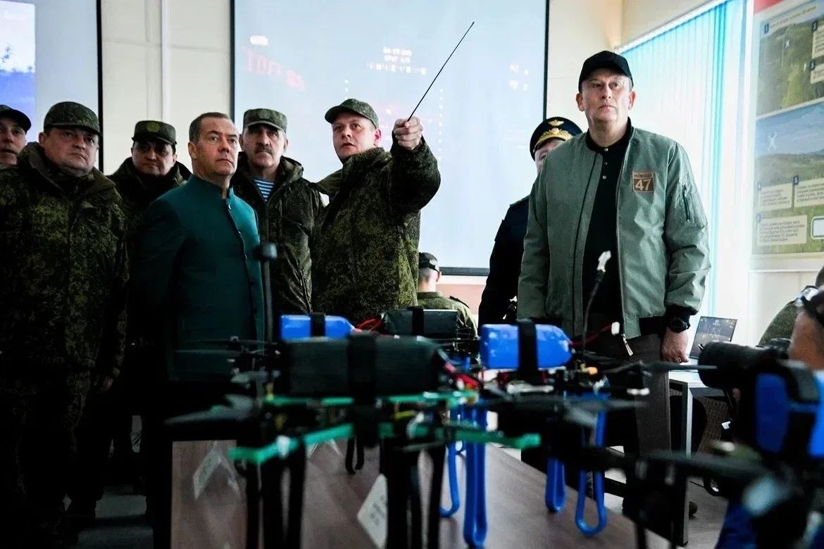 Также Медведеву рассказали о защите неба и продемонстрировали работу учебного центра Ленинградского военного округа. Сейчас здесь уделяют особое внимание подготовке операторов БПЛА.