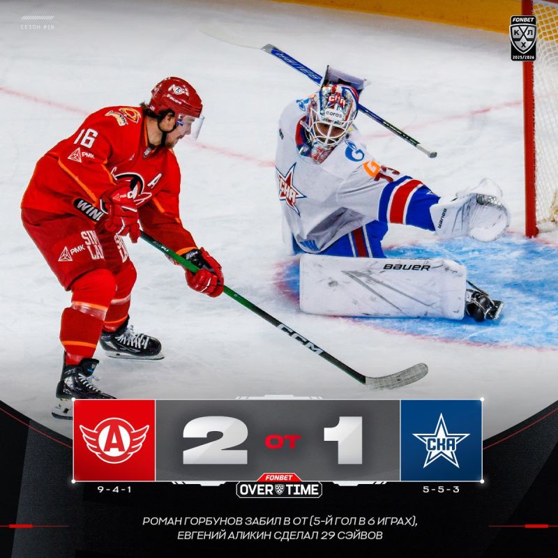 Петербургский СКА проиграл екатеринбургскому «Автомобилисту» в овертайме со счетом 1:2 в гостевом матче регулярного чемпионата «Фонбет» — КХЛ.В составе победителей шайбы забросили Егор Черников (39-я минута) и Роман...