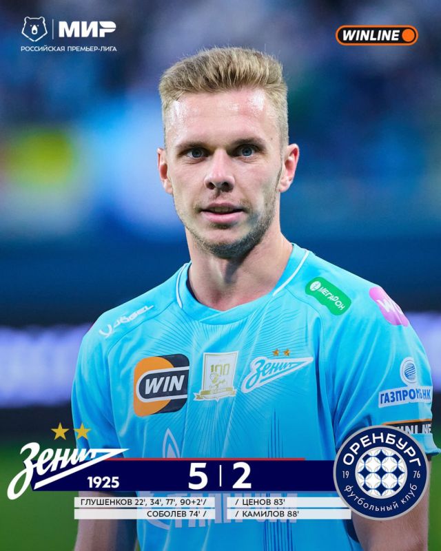 Футболисты петербургского «Зенита» обыграли «Оренбург» со счетом 5:2 в домашнем матче десятого тура Российской премьер-лиги (РПЛ).Покер сделал полузащитник сборной России Максим Глушенков (22, 34, 77 и 90+2-я минуты).Еще один гол у...