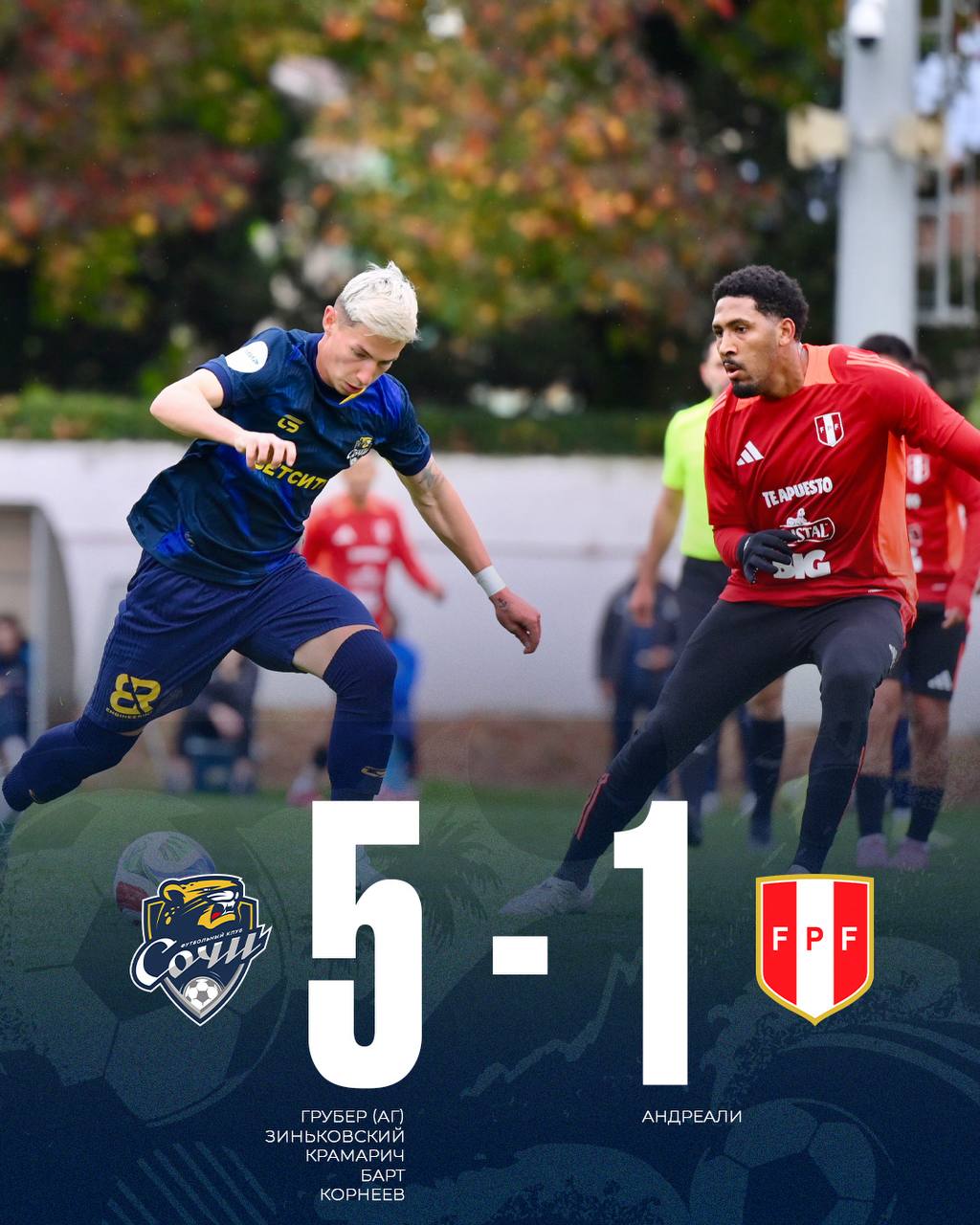 Футболисты «Сочи» разгромили в товарищеском матче сборную Перу со счетом 5:1.