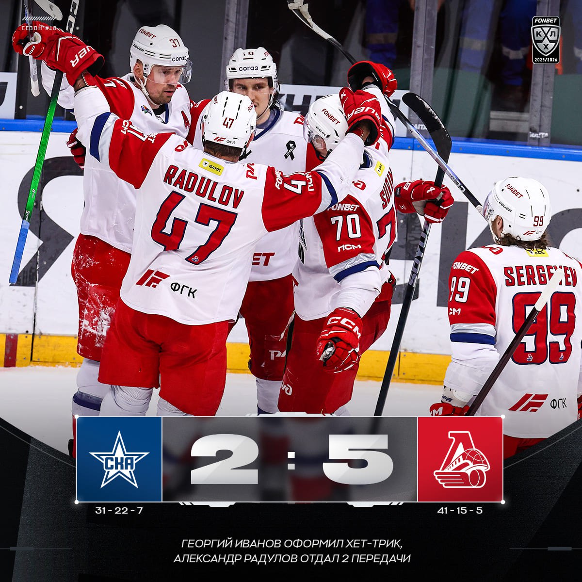Ярославский «Локомотив» обыграл петербургский СКА со счетом 5:2 в гостевом матче регулярного чемпионата КХЛ.